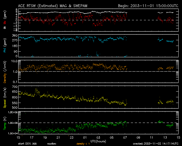 太陽風磁場は5nT程度ですので、今後極端な擾乱の発達は無いでしょう。