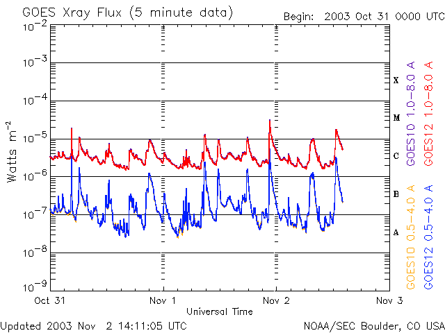 世界時10月29日20時49分(日本時間30日5時49分)に発生したX10の巨大な太陽フレア以降、
