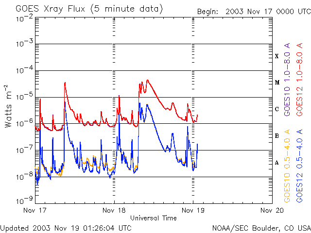 GOES衛星のX線観測データにX線の上昇が観測されています。
