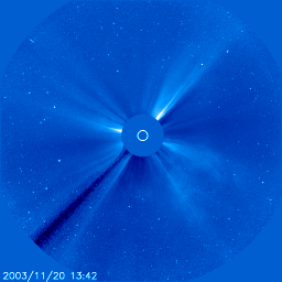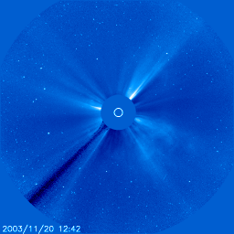 20日のSOHO衛星のLASCO C3に、かなり薄いですがfull Halo CMEが観測されています。