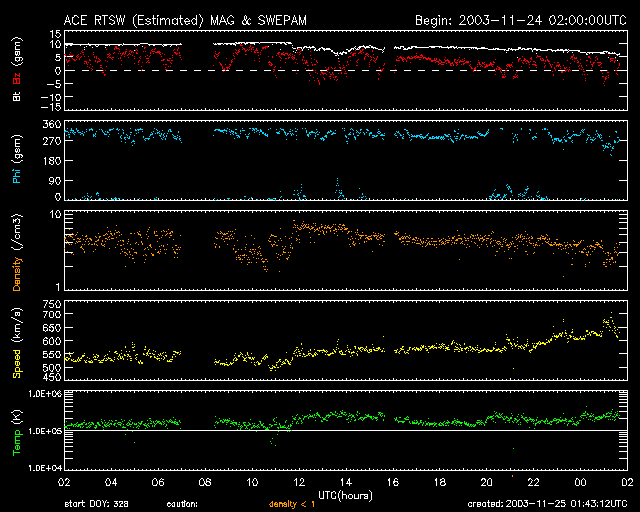 および、太陽風の密度(3番目の橙線)、速度(4番目の黄線)
