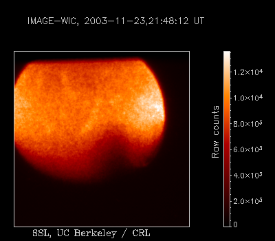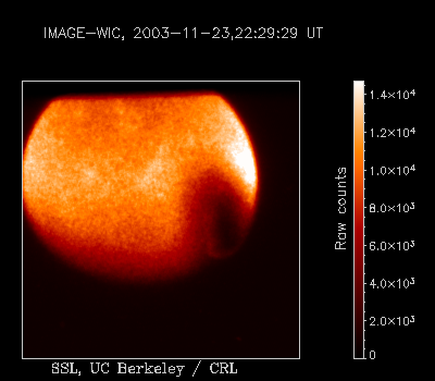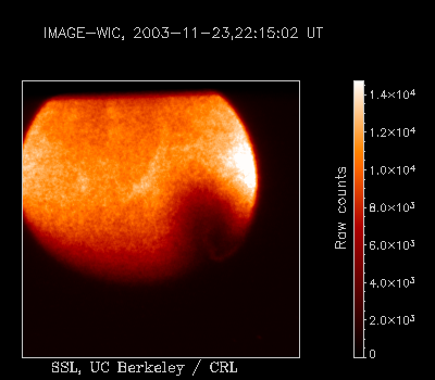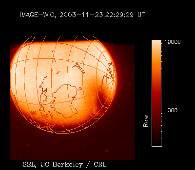 IMAGE衛星の写真、24日 07:29 (淡くオーロラの帯が見えています)