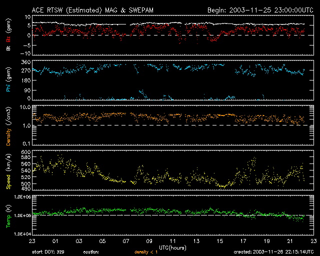 および、太陽風の密度(3番目の橙線)、速度(4番目の黄線)
