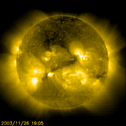 SOHO衛星 EIT284の写真によると、大きなコロナホール(太陽面の暗く見える領域)は見られなくなりました。
