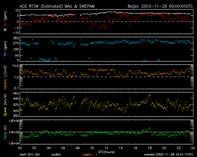 ACE衛星で日本時28日19〜21時(世界時28日10〜12時)に太陽風磁場が南を向いていました。