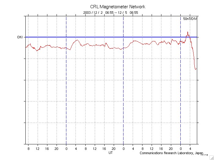 沖縄の磁場変動を見ると、5日13時(世界時5日4時)以降、