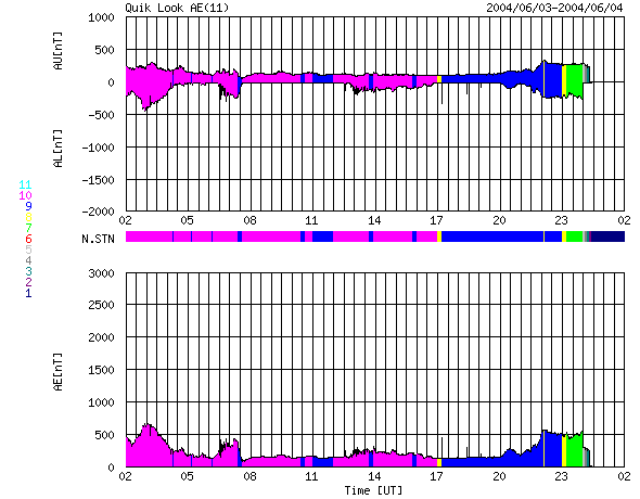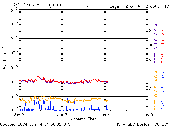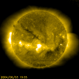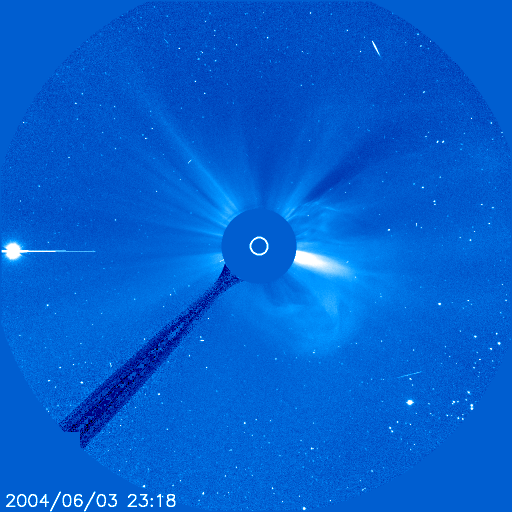 (c) NOAA/SEC ![]() リアルタイムAE指数 下段のAEグラフの値が高くなると、オーロラ活動が活発化しています。 (c) 京都大学, NICT ![]() SOHO衛星のMDIカメラによる太陽黒点 (c) SOHO (ESA & NASA) ![]() GOES衛星の太陽X線データ (c) NOAA/SEC ![]() 2004/ 6/ 4 10:50 追加 SOHO衛星LASCO C3カメラが捉えた、日面通過へ向かう金星。 (c) ESA & NASA ![]() | ||||||||||||||||||||||||||||||||||||||||||||||||||||||