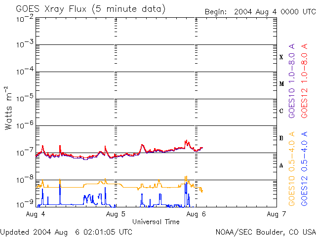 (c) NOAA/SEC ![]() GOES衛星の太陽X線データ (c) NOAA/SEC ![]() SOHO衛星のMDIカメラによる太陽黒点 (c) SOHO (ESA & NASA) ![]() | ||||||||||||||||||||||||||||||||||||||||||||||||||||||||