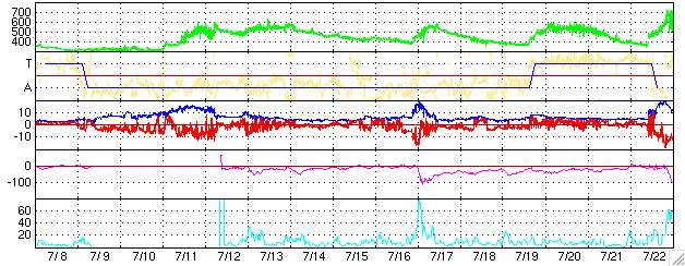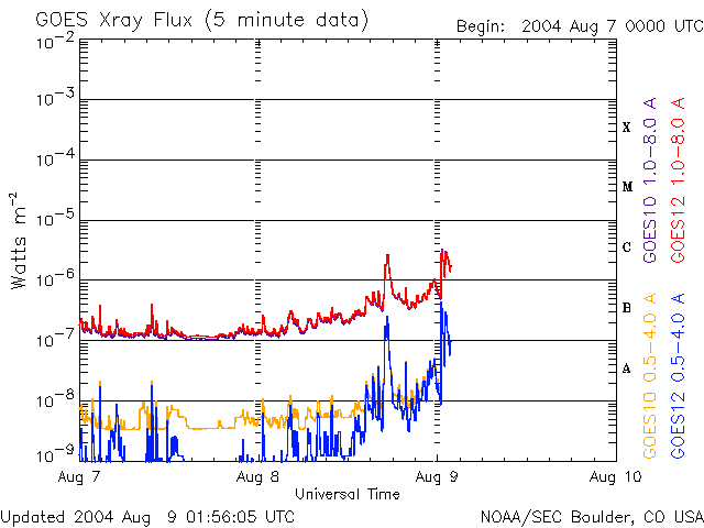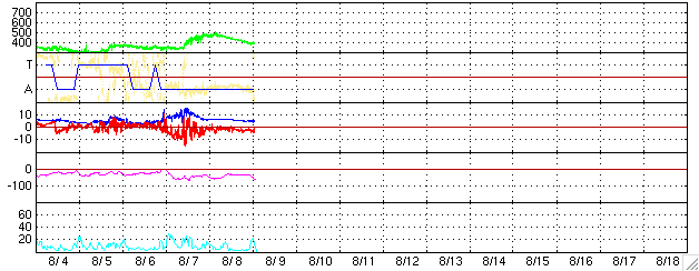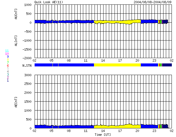 および、太陽風の密度(3番目の橙線)、速度(4番目の黄線) (c) NOAA/SEC ![]() リアルタイムAE指数 下段のAEグラフの値が高くなると、オーロラ活動が活発化しています。 (c) 京都大学, NICT ![]() SOHO衛星のMDIカメラによる太陽黒点 (c) SOHO (ESA & NASA) ![]() GOES衛星の太陽X線データ (c) NOAA/SEC ![]() | ||||||||||||||||||||||||||||||||||||||||||||||||||||||||