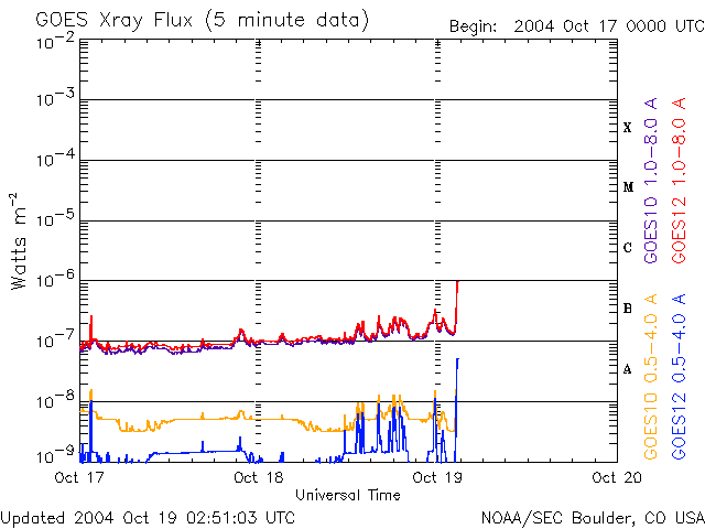 (c) NOAA/SEC ![]() SOHO衛星のMDIカメラによる太陽黒点 (c) SOHO (ESA & NASA) ![]() GOES衛星の太陽X線データ (c) NOAA/SEC ![]() | ||||||||||||||||||||||||||||||||||||||||||||||||||||||||
