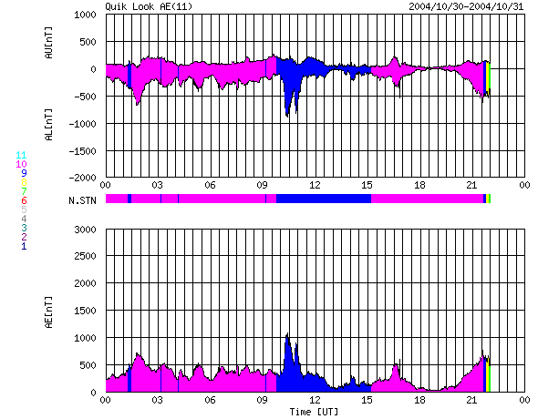 下段のAEグラフの値が高くなると、オーロラ活動が活発化しています。 (c) 京都大学, NICT ![]() | ||||||||||||||||||||||||||||||||||||||||||||||||||||||||