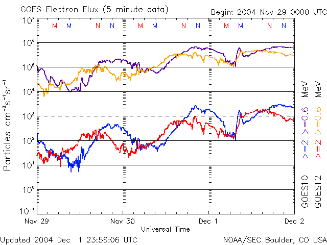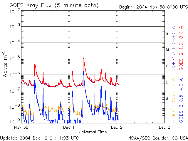 (c) NOAA/SEC ![]() SOHO衛星のMDIカメラによる太陽黒点 (c) SOHO (ESA & NASA) ![]() GOES衛星の太陽X線データ (c) NOAA/SEC ![]() | ||||||||||||||||||||||||||||||||||||||||||||||||||||||||
