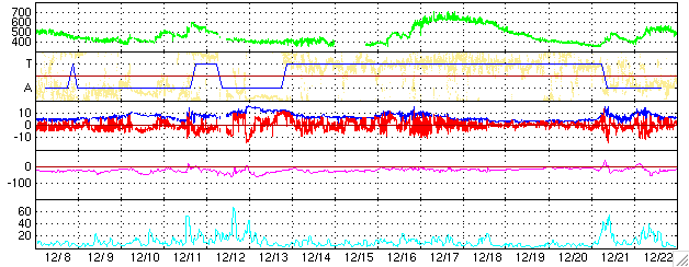 27日周期の図では、12月16日から太陽風の速度が上昇しています。