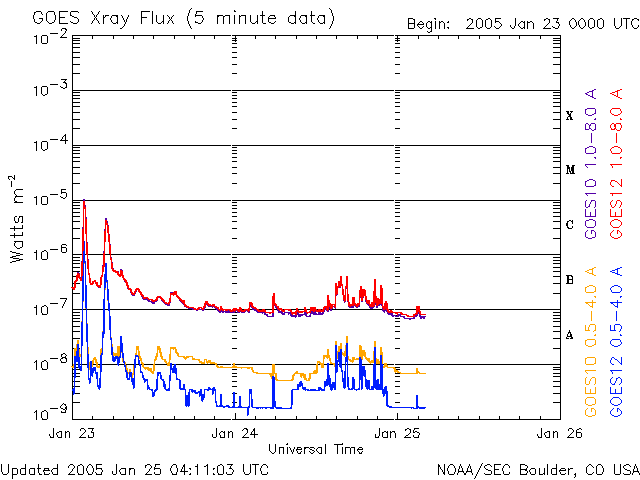 (c) NOAA/SEC ![]() GOES衛星の太陽X線データ (c) NOAA/SEC ![]() SOHO衛星のMDIカメラによる太陽黒点 (c) SOHO (ESA & NASA) ![]() | ||||||||||||||||||||||||||||||||||||||||||||||||||||||||