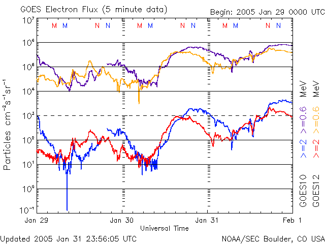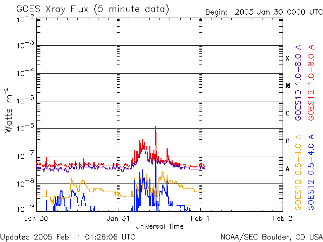 (c) NOAA/SEC ![]() GOES衛星の太陽X線データ (c) NOAA/SEC ![]() SOHO衛星のMDIカメラによる太陽黒点 (c) SOHO (ESA & NASA) ![]() | ||||||||||||||||||||||||||||||||||||||||||||||||||||||||