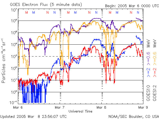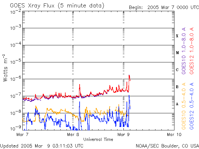 (c) NOAA/SEC ![]() SOHO衛星のMDIカメラによる太陽黒点 (c) SOHO (ESA & NASA) ![]() GOES衛星の太陽X線データ (c) NOAA/SEC ![]() | ||||||||||||||||||||||||||||||||||||||||||||||||||||||||