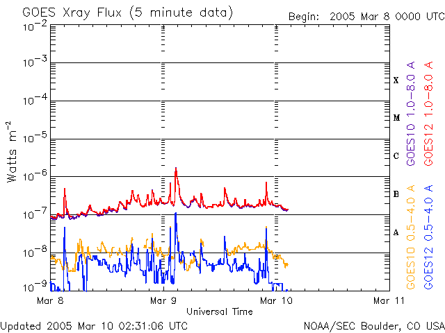(c) NOAA/SEC ![]() SOHO衛星のMDIカメラによる太陽黒点 (c) SOHO (ESA & NASA) ![]() GOES衛星の太陽X線データ (c) NOAA/SEC ![]() | ||||||||||||||||||||||||||||||||||||||||||||||||||||||||
