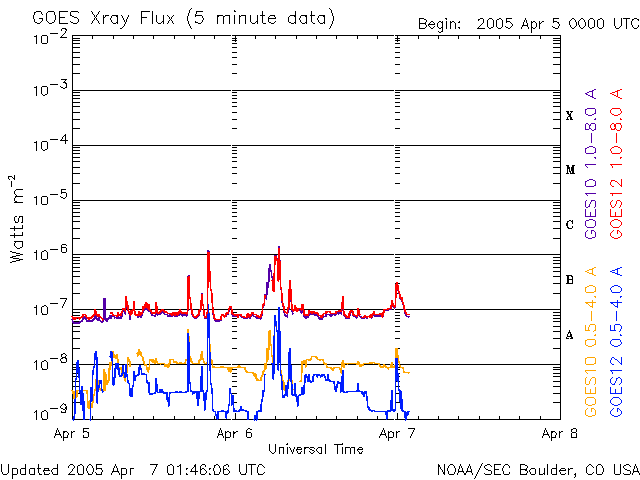 (c) NOAA/SEC ![]() GOES衛星の太陽X線データ (c) NOAA/SEC ![]() SOHO衛星のMDIカメラによる太陽黒点 (c) SOHO (ESA & NASA) ![]() | |||||||||||||||||||||||||||||||||||||||||||||||||||||||||