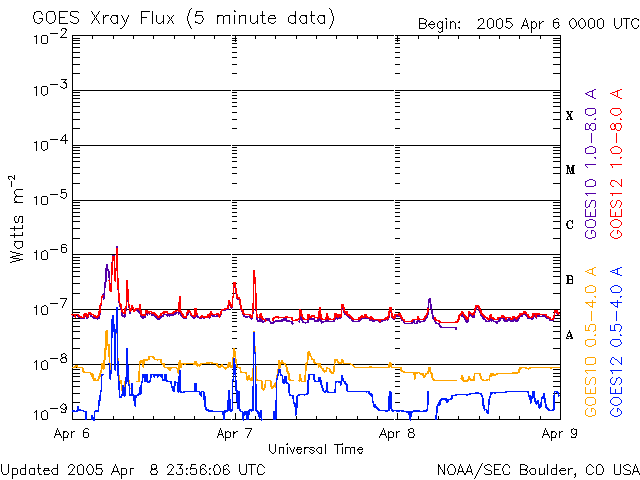 (c) NOAA/SEC ![]() SOHO衛星のMDIカメラによる太陽黒点 (c) SOHO (ESA & NASA) ![]() GOES衛星の太陽X線データ (c) NOAA/SEC ![]() | ||||||||||||||||||||||||||||||||||||||||||||||||||||||||