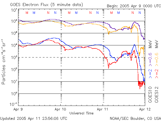 (c) NOAA/SEC ![]() GOES衛星の太陽X線データ (c) NOAA/SEC ![]() SOHO衛星のMDIカメラによる太陽黒点 (c) SOHO (ESA & NASA) ![]() | ||||||||||||||||||||||||||||||||||||||||||||||||||||||||