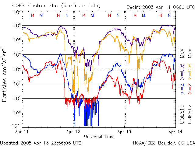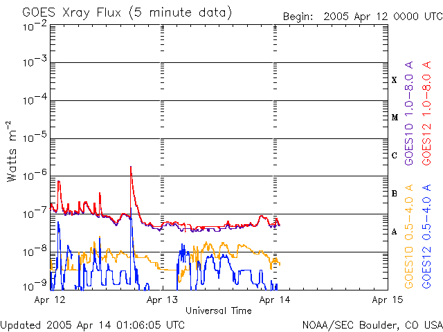 (c) NOAA/SEC ![]() GOES衛星の太陽X線データ (c) NOAA/SEC ![]() SOHO衛星のMDIカメラによる太陽黒点 (c) SOHO (ESA & NASA) ![]() | ||||||||||||||||||||||||||||||||||||||||||||||||||||||||