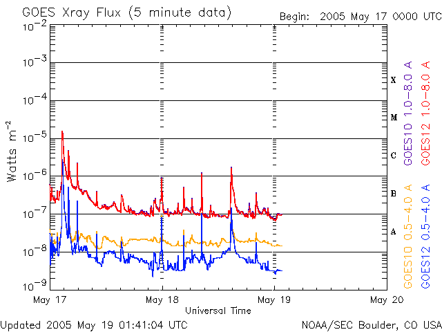(c) NOAA/SEC ![]() GOES衛星の太陽X線データ (c) NOAA/SEC ![]() SOHO衛星のMDIカメラによる太陽黒点 (c) SOHO (ESA & NASA) ![]() | ||||||||||||||||||||||||||||||||||||||||||||||||||||||||