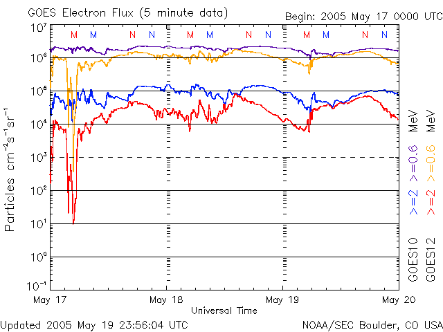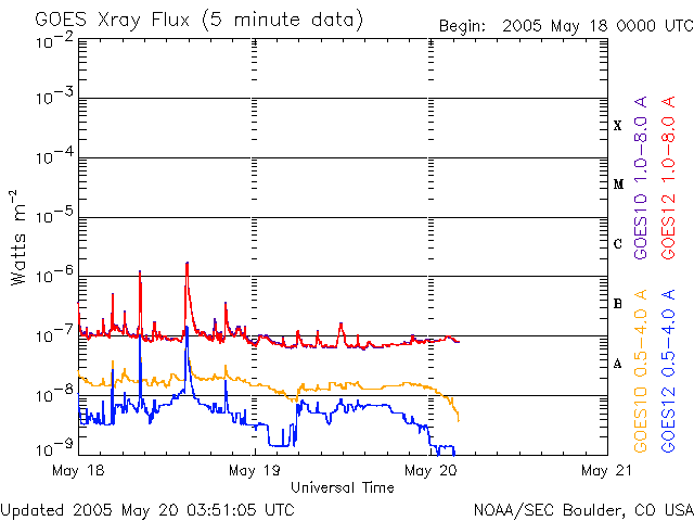 (c) NOAA/SEC ![]() GOES衛星の太陽X線データ (c) NOAA/SEC ![]() SOHO衛星のMDIカメラによる太陽黒点 (c) SOHO (ESA & NASA) ![]() | ||||||||||||||||||||||||||||||||||||||||||||||||||||||||