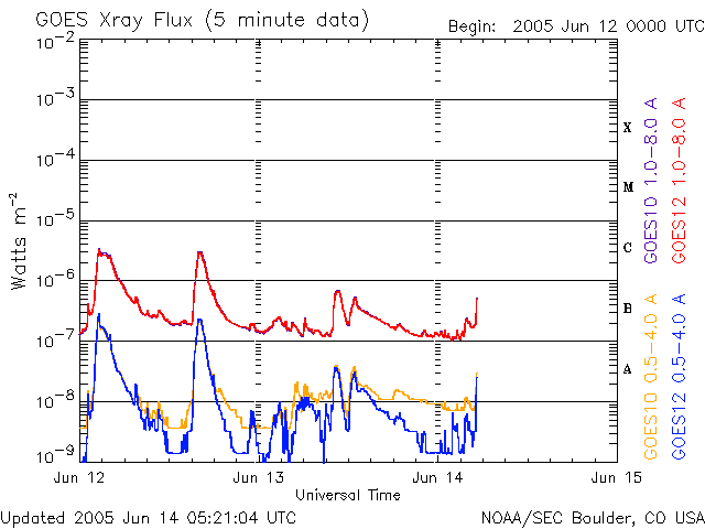 (c) NOAA/SEC ![]() GOES衛星の太陽X線データ (c) NOAA/SEC ![]() SOHO衛星のMDIカメラによる太陽黒点 (c) SOHO (ESA & NASA) ![]() | |||||||||||||||||||||||||||||||||||||||||||||||||||||||