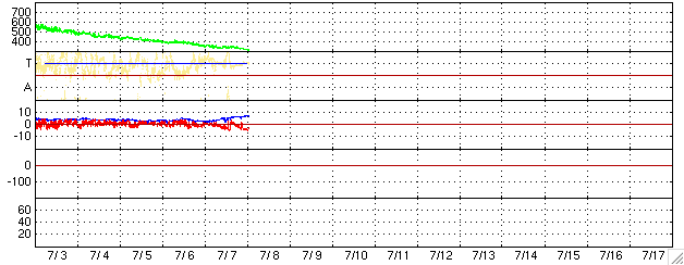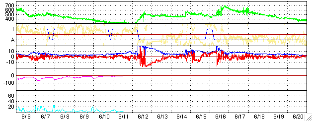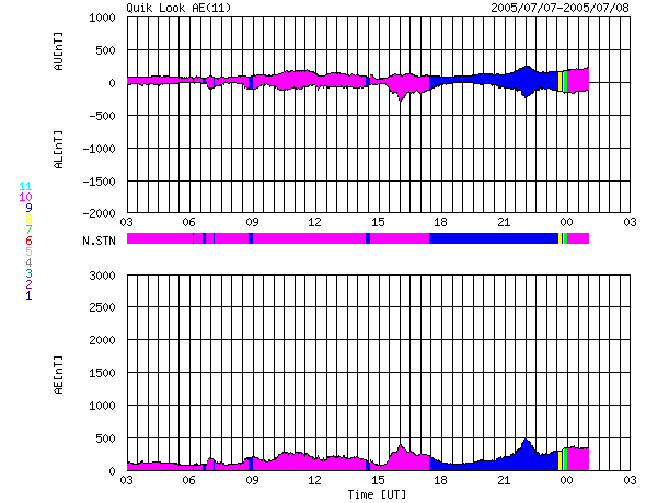 GOES衛星の太陽X線データ (c) NOAA/SEC ![]() SOHO衛星のMDIカメラによる太陽黒点 (c) SOHO (ESA & NASA) ![]() SOHO衛星のMDIカメラによる太陽黒点 (c) SOHO (ESA & NASA) ![]() リアルタイムAE指数 下段のAEグラフの値が高くなると、オーロラ活動が活発化しています。 (c) 京都大学, NICT ![]() 27日の太陽周期に合わせたデータプロット (太陽風版) 太陽が同じ面を地球に向けていた27日前の変化から、今後を予想することができます。 (c) NICT