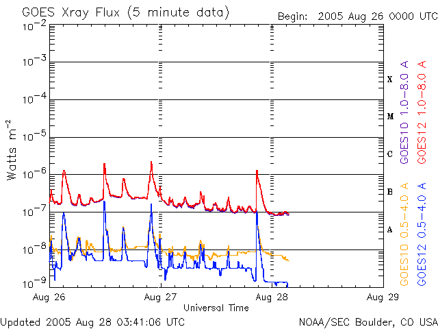 (c) NOAA/SEC ![]() SOHO衛星のMDIカメラによる太陽黒点 (c) SOHO (ESA & NASA) ![]() GOES衛星の太陽X線データ (c) NOAA/SEC ![]() | ||||||||||||||||||||||||||||||||||||||||||||||||||||||||