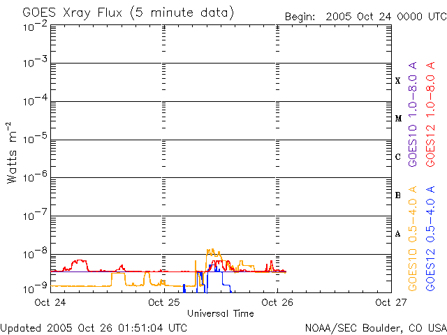 (c) NOAA/SEC ![]() GOES衛星の太陽X線データ (c) NOAA/SEC ![]() SOHO衛星のMDIカメラによる太陽黒点 (c) SOHO (ESA & NASA) ![]() | ||||||||||||||||||||||||||||||||||||||||||||||||||||||||