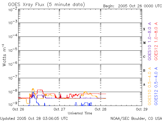 (c) NOAA/SEC ![]() SOHO衛星のMDIカメラによる太陽黒点 (c) SOHO (ESA & NASA) ![]() GOES衛星の太陽X線データ (c) NOAA/SEC ![]() | ||||||||||||||||||||||||||||||||||||||||||||||||||||||||