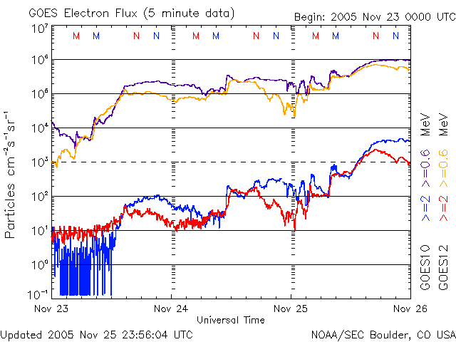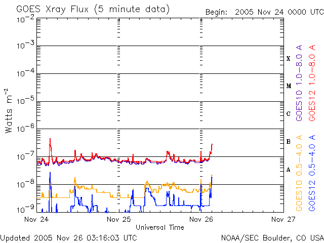 (c) NOAA/SEC ![]() GOES衛星の太陽X線データ (c) NOAA/SEC ![]() SOHO衛星のMDIカメラによる太陽黒点 (c) SOHO (ESA & NASA) ![]() | |||||||||||||||||||||||||||||||||||||||||||||||||||||||||