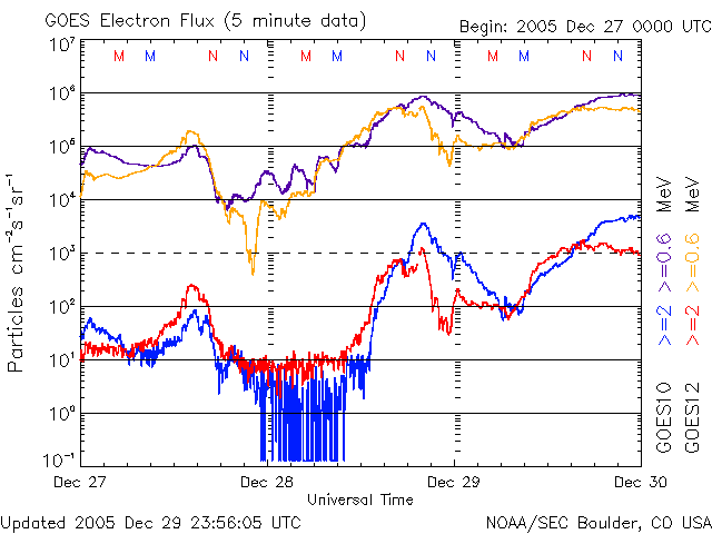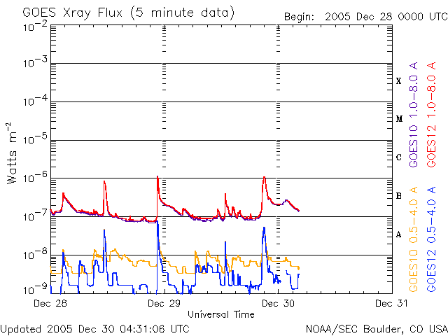 (c) NOAA/SEC ![]() GOES衛星の太陽X線データ (c) NOAA/SEC ![]() SOHO衛星のMDIカメラによる太陽黒点 (c) SOHO (ESA & NASA) ![]() | ||||||||||||||||||||||||||||||||||||||||||||||||||||||||