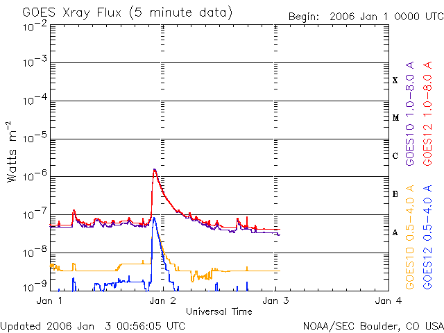 (c) NOAA/SEC ![]() GOES衛星の太陽X線データ (c) NOAA/SEC ![]() SOHO衛星のMDIカメラによる太陽黒点 (c) SOHO (ESA & NASA) ![]() | ||||||||||||||||||||||||||||||||||||||||||||||||||||||||