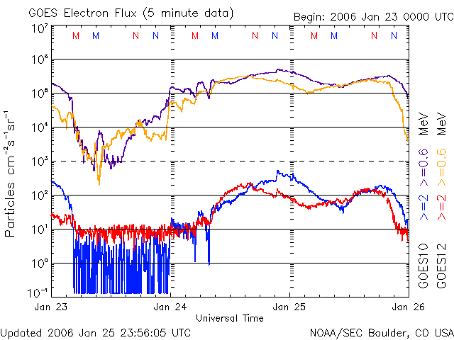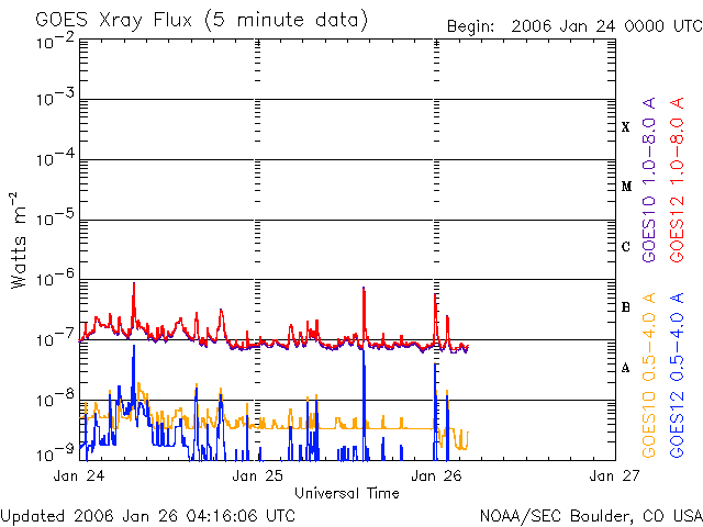 (c) NOAA/SEC ![]() GOES衛星の太陽X線データ (c) NOAA/SEC ![]() SOHO衛星のMDIカメラによる太陽黒点 (c) SOHO (ESA & NASA) ![]() | ||||||||||||||||||||||||||||||||||||||||||||||||||||||||