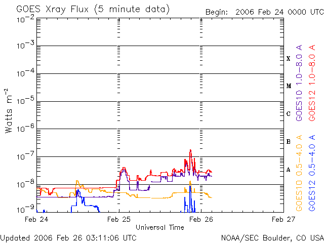 (c) NOAA/SEC ![]() GOES衛星の太陽X線データ (c) NOAA/SEC ![]() SOHO衛星のMDIカメラによる太陽黒点 (c) SOHO (ESA & NASA) ![]() | ||||||||||||||||||||||||||||||||||||||||||||||||||||||||