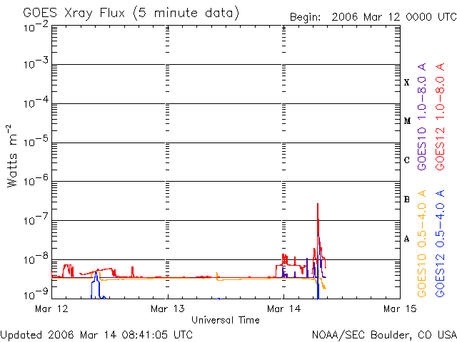下段のAEグラフの値が高くなると、オーロラ活動が活発化しています。 (c) 京都大学, NICT ![]() SOHO衛星のMDIカメラによる太陽黒点 (c) SOHO (ESA & NASA) ![]() GOES衛星の太陽X線データ (c) NOAA/SEC ![]() | |||||||||||||||||||||||||||||||||||||||||||||||||||||||