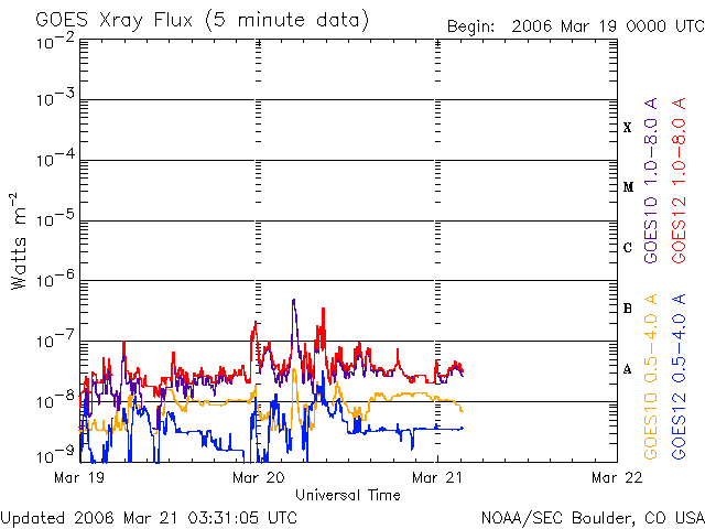 (c) NOAA/SEC ![]() SOHO衛星のMDIカメラによる太陽黒点 (c) SOHO (ESA & NASA) ![]() GOES衛星の太陽X線データ (c) NOAA/SEC ![]() | ||||||||||||||||||||||||||||||||||||||||||||||||||||||||
