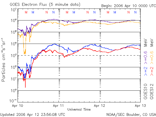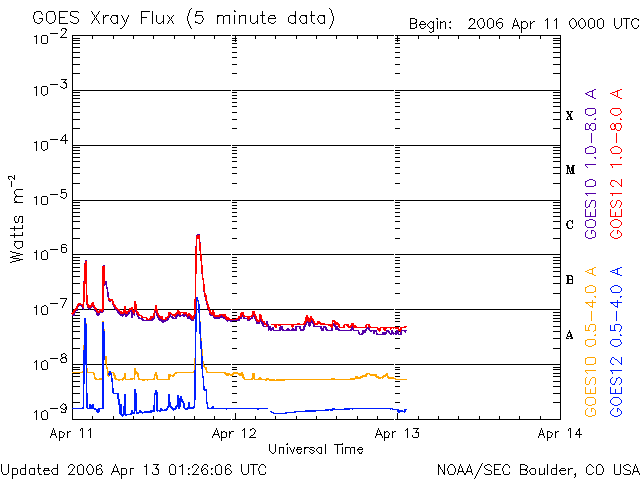 (c) NOAA/SEC ![]() SOHO衛星のMDIカメラによる太陽黒点 (c) SOHO (ESA & NASA) ![]() GOES衛星の太陽X線データ (c) NOAA/SEC ![]() | ||||||||||||||||||||||||||||||||||||||||||||||||||||||||