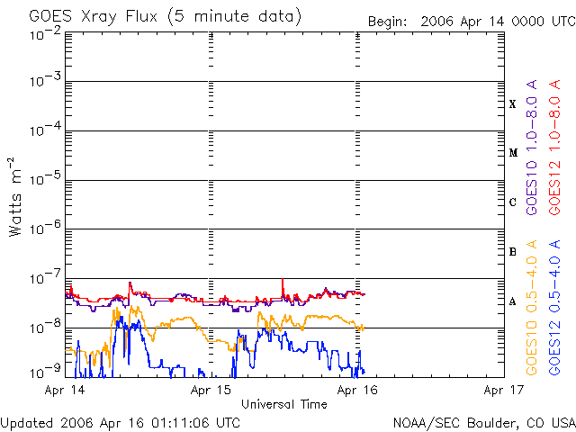 (c) NOAA/SEC ![]() SOHO衛星のMDIカメラによる太陽黒点 (c) SOHO (ESA & NASA) ![]() GOES衛星の太陽X線データ (c) NOAA/SEC ![]() | ||||||||||||||||||||||||||||||||||||||||||||||||||||||||