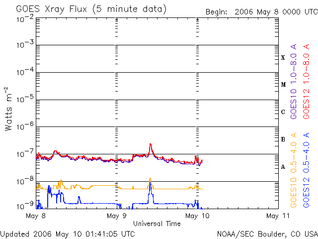 (c) NOAA/SEC ![]() SOHO衛星のMDIカメラによる太陽黒点 (c) SOHO (ESA & NASA) ![]() GOES衛星の太陽X線データ (c) NOAA/SEC ![]() | ||||||||||||||||||||||||||||||||||||||||||||||||||||||||
