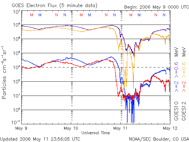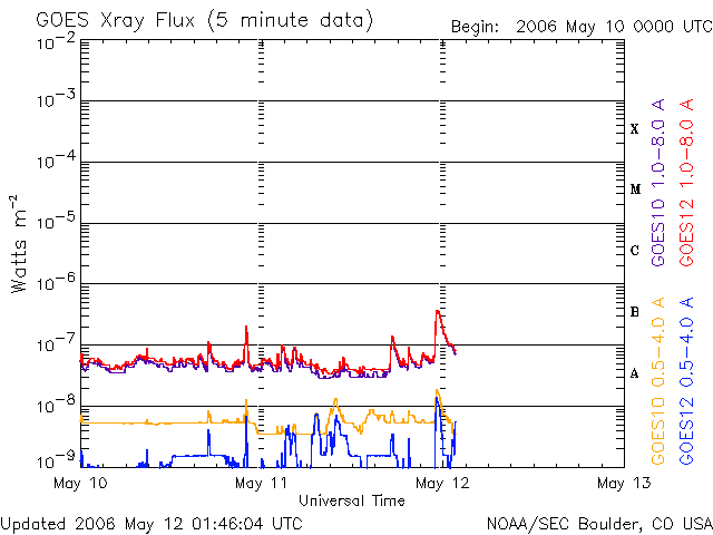 (c) NOAA/SEC ![]() SOHO衛星のMDIカメラによる太陽黒点 (c) SOHO (ESA & NASA) ![]() GOES衛星の太陽X線データ (c) NOAA/SEC ![]() | ||||||||||||||||||||||||||||||||||||||||||||||||||||||||