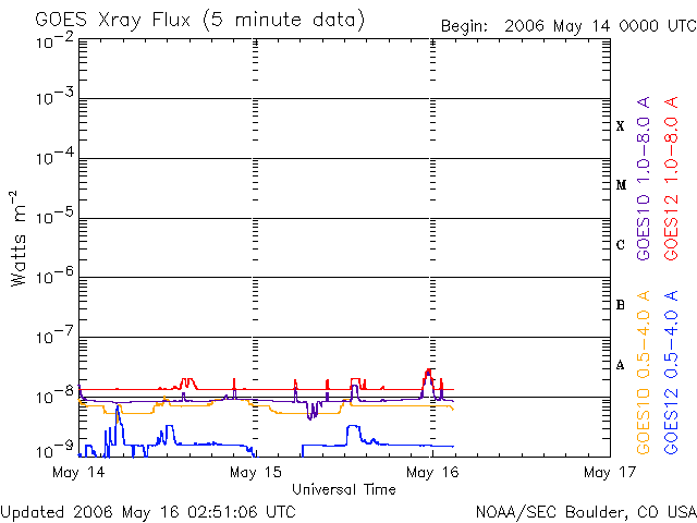 (c) NOAA/SEC ![]() SOHO衛星のMDIカメラによる太陽黒点 (c) SOHO (ESA & NASA) ![]() GOES衛星の太陽X線データ (c) NOAA/SEC ![]() | ||||||||||||||||||||||||||||||||||||||||||||||||||||||||