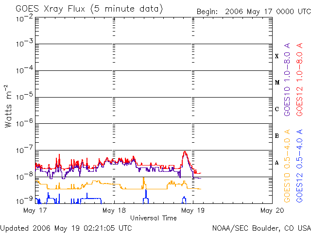 (c) NOAA/SEC ![]() GOES衛星の太陽X線データ (c) NOAA/SEC ![]() SOHO衛星のMDIカメラによる太陽黒点 (c) SOHO (ESA & NASA) ![]() | ||||||||||||||||||||||||||||||||||||||||||||||||||||||||