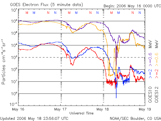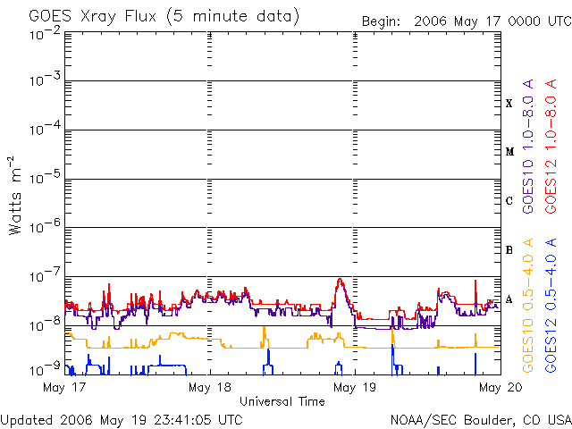 (c) NOAA/SEC ![]() GOES衛星の太陽X線データ (c) NOAA/SEC ![]() SOHO衛星のMDIカメラによる太陽黒点 (c) SOHO (ESA & NASA) ![]() | ||||||||||||||||||||||||||||||||||||||||||||||||||||||||