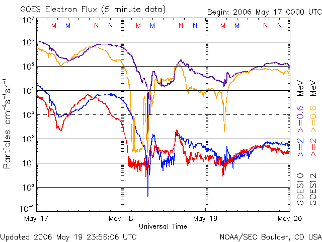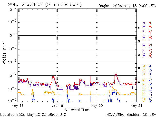 (c) NOAA/SEC ![]() SOHO衛星のMDIカメラによる太陽黒点 (c) SOHO (ESA & NASA) ![]() GOES衛星の太陽X線データ (c) NOAA/SEC ![]() | ||||||||||||||||||||||||||||||||||||||||||||||||||||||||