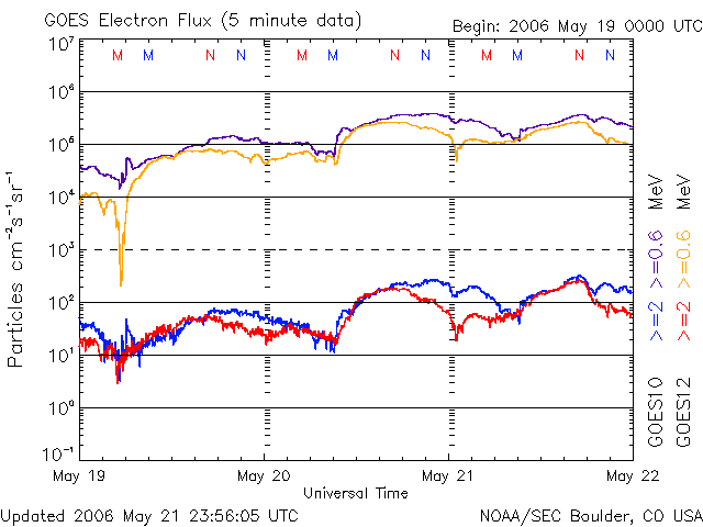 (c) NOAA/SEC ![]() SOHO衛星のMDIカメラによる太陽黒点 (c) SOHO (ESA & NASA) ![]() GOES衛星の太陽X線データ (c) NOAA/SEC ![]() | ||||||||||||||||||||||||||||||||||||||||||||||||||||||||