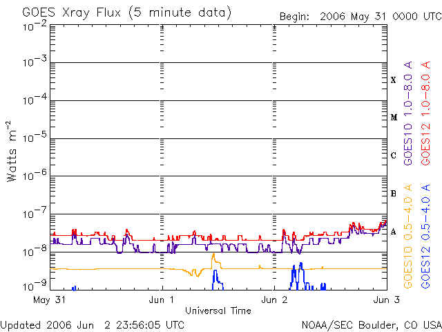 (c) NOAA/SEC ![]() GOES衛星の太陽X線データ (c) NOAA/SEC ![]() SOHO衛星のMDIカメラによる太陽黒点 (c) SOHO (ESA & NASA) ![]() | |||||||||||||||||||||||||||||||||||||||||||||||||||||||