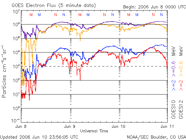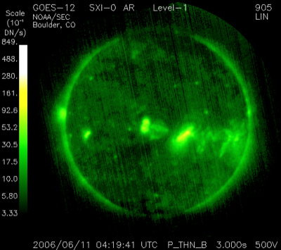 (c) NOAA/SEC ![]() GOES衛星の太陽X線データ (c) NOAA/SEC ![]() SOHO衛星のMDIカメラによる太陽黒点 (c) SOHO (ESA & NASA) ![]() | |||||||||||||||||||||||||||||||||||||||||||||||||||||||||